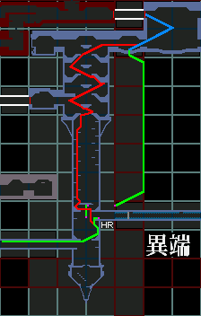 S1Rの応用っていうかS1Rやってて失敗した時によく発生するやつ。位置ずらしまくってると、切り替え後の出現位置がずれた座標の通りの部屋になってしまうみたいな現象がある。