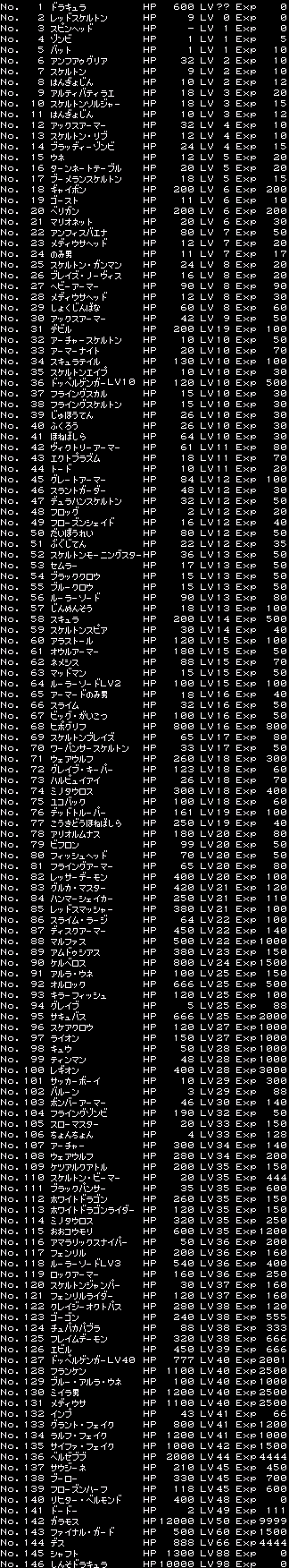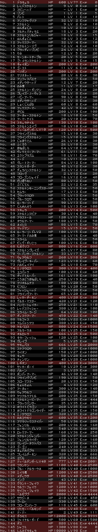 ベリギャイ、ドッペル10、ミノウェア、レッサーデーモン、のBEAT6、LV13でゲームクリアできる。