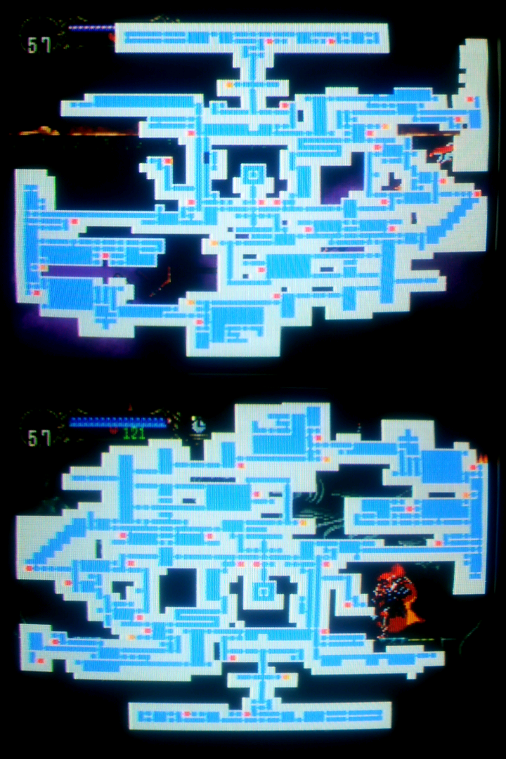 ◆アンフィスバエナの左にパワーオブウルフで衝突した時の画面ずれ発生時って何気に位置ずれも発生してる。地図上のアルカードの現在位置が0.6部屋分くらい左にずれる。その時々によってずれ方に差がある気がする。これに利点があるのかないのかはよく分からない。