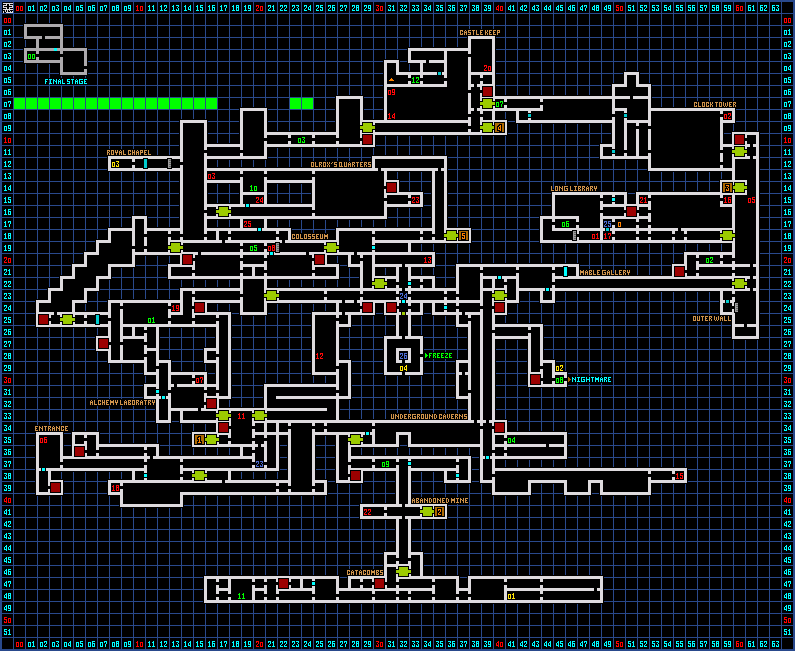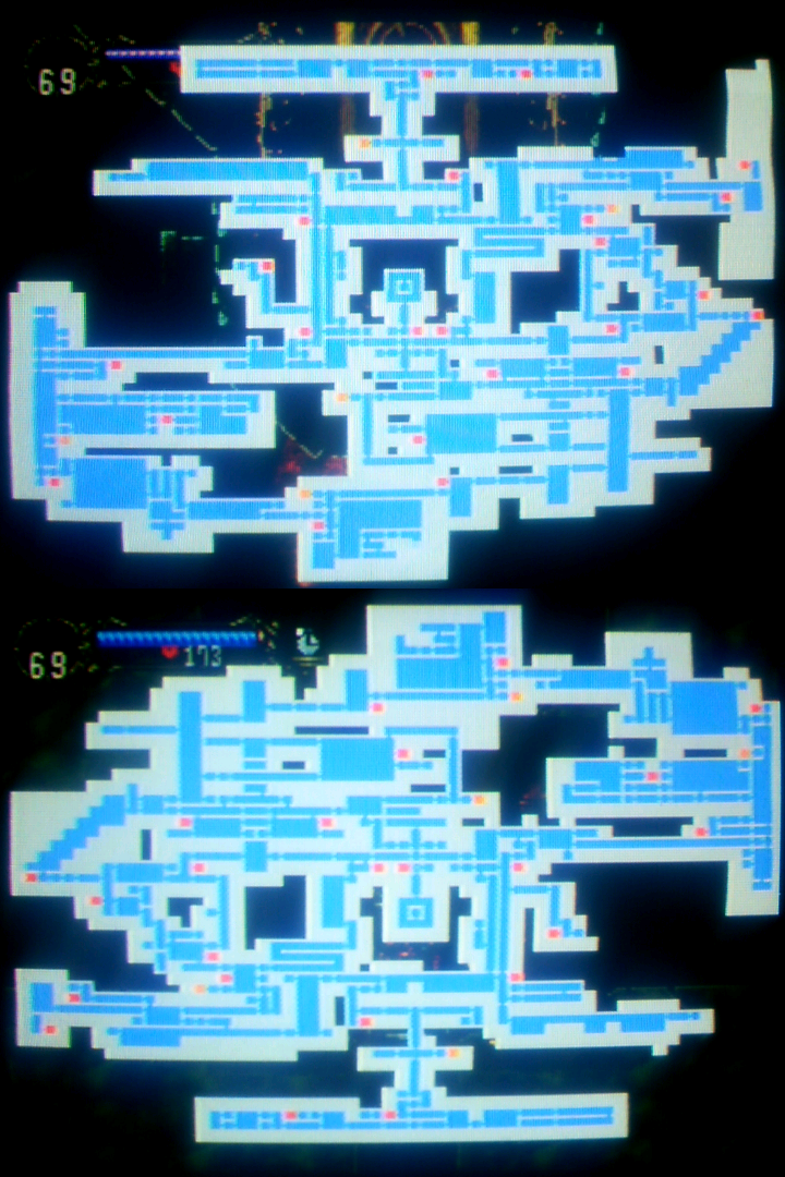 限界なかったら、単純作業繰り返すだけ(「だけ」ってほど楽でもないけど)で悪魔城の07より下は全部埋まるはず。仮に上下でもループするなら完全に全部埋まる。超適当な計算によると3時間とか4時間とかで完了するのか?思ったより大変でもないな。