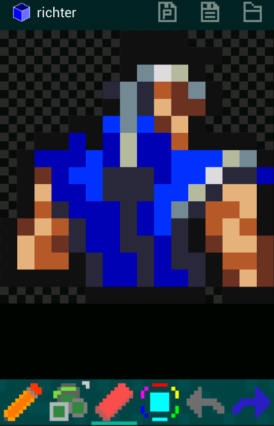 リヒターの首元とか、青と茶色の間になんか黒い線が発生する。見本にした画像でも発生してた。なんなのこれ。サイズ変えて保存しても発生するから潰れたせいとかではなさそうなんだけど、ドット絵の仕様とか宿命とかそういうのなの?