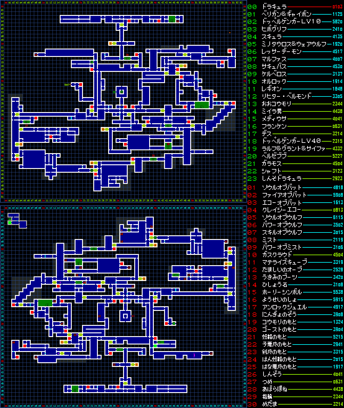 ◆コウモリのセーブアイコンでミスっぽい部分が5ドットくらいある。コウモリの羽根は左右対称にドット打ってるっぽいんだけど1枚目の羽根2ヶ所色間違ってるっぽい(右のは月の端を表現するのにわざと打っててミスじゃないかもだけど分からん)。そんで2枚目の羽根1ヶ所と、左端の黒打つべき部分を月の色で打ってるから2枚目だけ月が2ドット分デカくなってる。
