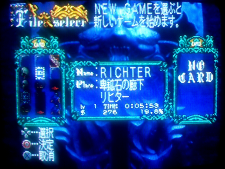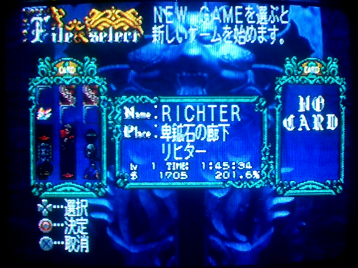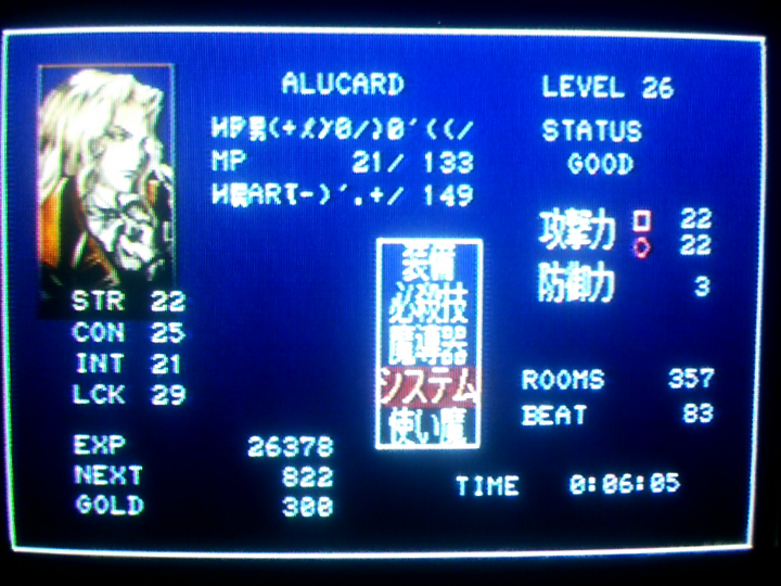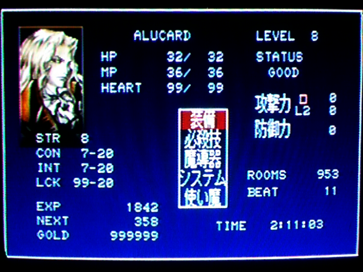 で、このリヒターでライフマックスアップを取りまくってからデータ消してコピーしてアルカードにする。リヒターがライフマックスアップを取るとHPが10増える。アルカードが取った場合は5。リヒターで取った方が得ということ。本来の限界よりHPが多いアルカードにできる。