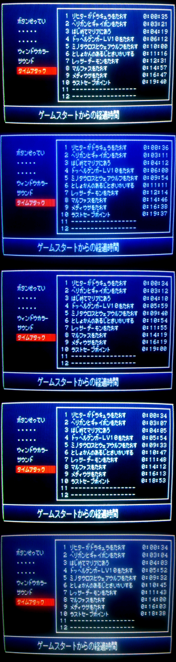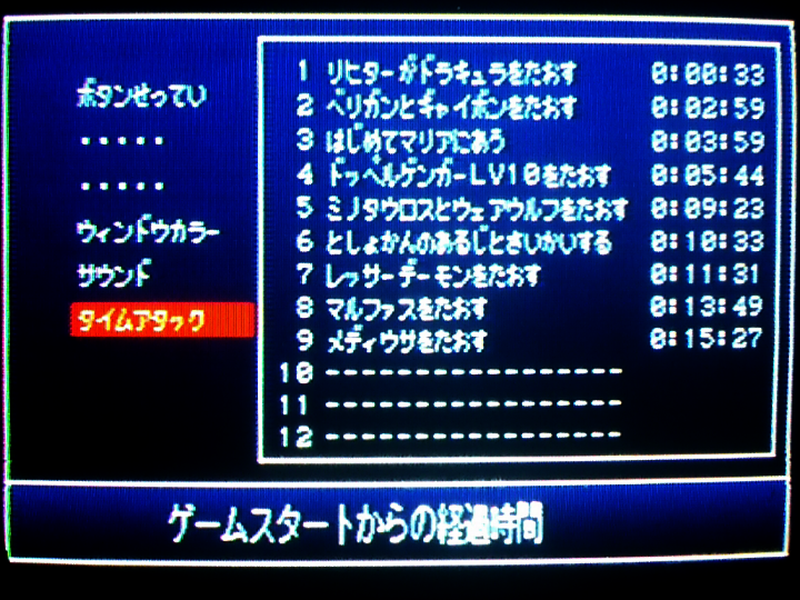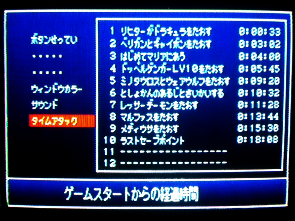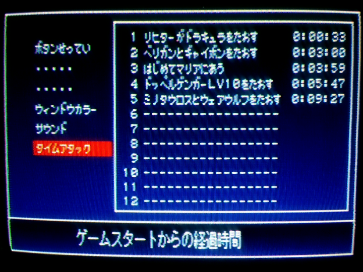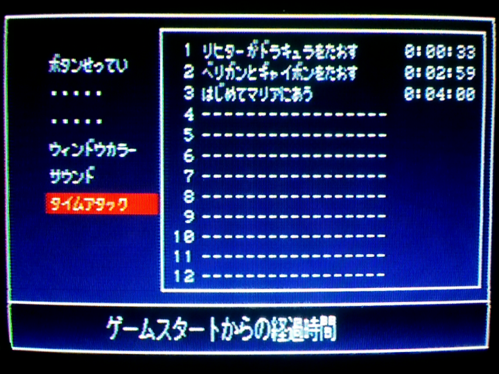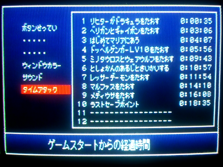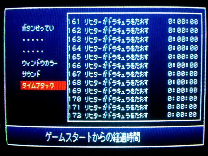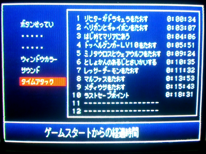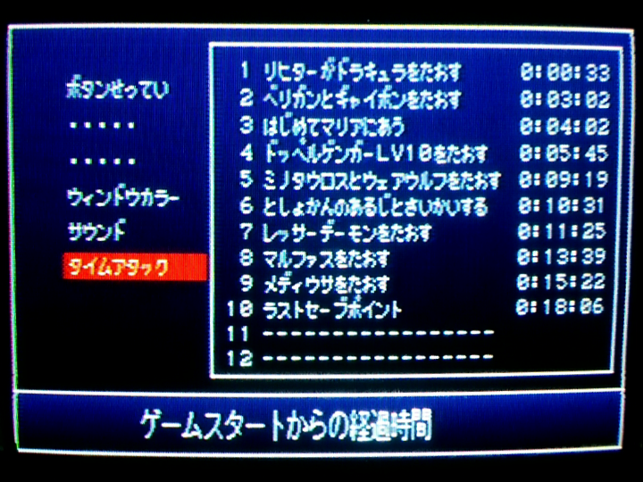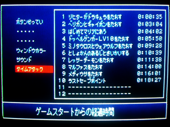 ドラキュラ32秒になる時と33秒になる時の違いが分からない。32.5秒だったら33秒、32.4秒だったら32秒って記録されるとかそういう仕様なのかも。それかPS2の調子によってロード時間が多少ブレるという現象のせい。あと、名前入力して1792年のムービー飛ばした後のロードがやたら長かったことがある(過去にはここでフリーズしたこともある)。ゲーム内時間のカウント開始は「血の輪廻」とか表示されるちょっとまえあたりだからタイムアタック的には問題ないけど、ロード時間変化するとかめっちゃ困る。そんなのゲームの上手さとかで対策できないし。