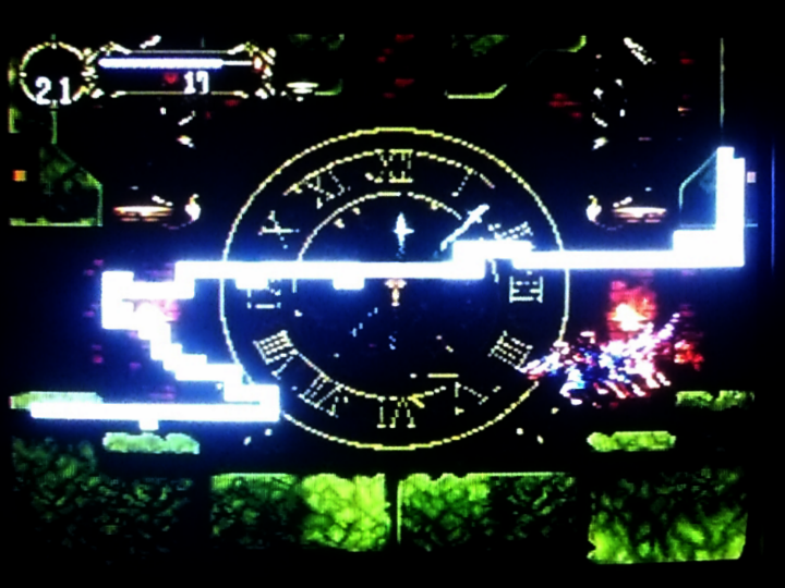 ETで隙間入った後、蝙蝠で画面の上の方まで行ってから、上キー入力霧変身して、ちょうど人間形態に戻った時に画面切り替え発生すると、画面が上下に切り替わりまくる状態になれる。ここから左キー押しっぱなしにしてたらラストセーブにちゃんと入れるかも。